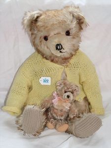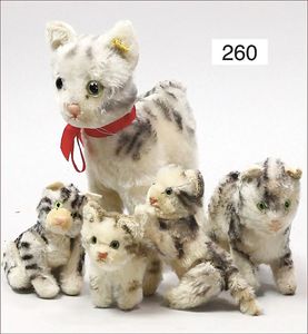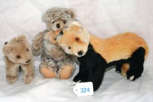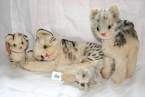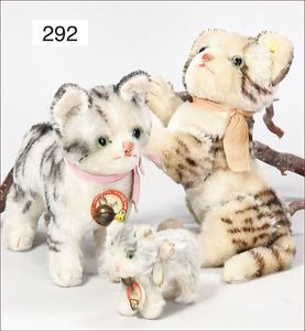 2 Plüschtiere, 1x Bär, Baumwollplüsch, mit Stimme, Hersteller ?, 42 cm, 1x Steiner Katze, Länge ca. 40 cm