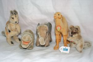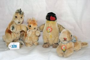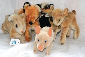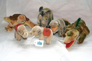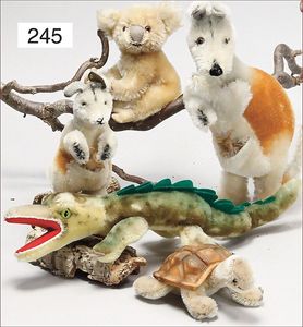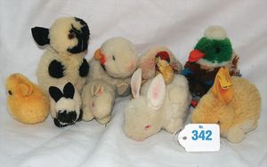 Konv. Plüschtiere, darunter auch Steiff, neu, weich gestopft, teilw. mit Knopf und Fahne, Schildkröt 3x Wauzy, weich gestopft, 2x 22 cm, 1x 44 cm