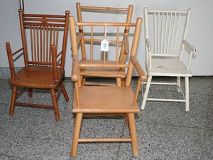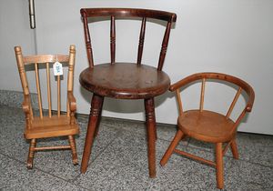 3 Puppenstühle Holz, Sitzhöhe 10 cm, 14 cm und 25 cm