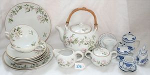 Konv. Porzellanteile, teilw. mit Zwiebelmuster, Grauthheim-Teeservice, gem. Self Bavaria, 6 Tassen, Untertassen, Milchkännchen, Zuckerdosen, Teekanne, Höhe 15 cm