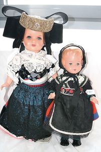 2 Celluloid-Puppen, 1x gem. S53 und 1x gem. SE42, jeweils in Tracht