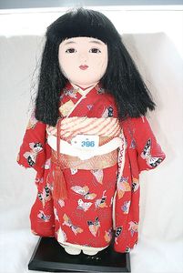 Porzellankopf-Puppe, Asiat, neu, auf Sockel befestigt, Hände Kunststoff, 38 cm, im Kimono