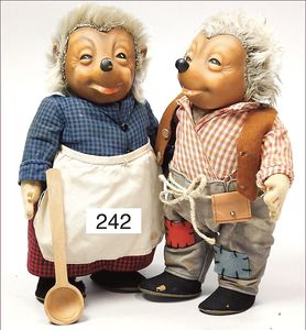 SCHILDKRÖT 3x Trachtenpaar, Celluloid, 1x zum Aufziehen, Uhrwerk intakt, 16 cm, 1x 19 und 22 cm, 1x mit festem Kopf, gem. 29