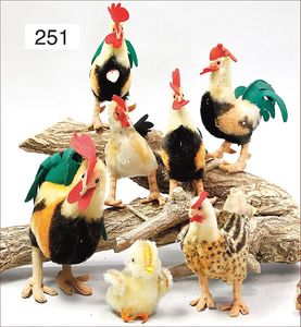 4 Puppenstühle, bespielt, Sitzhöhe ca. 16 cm