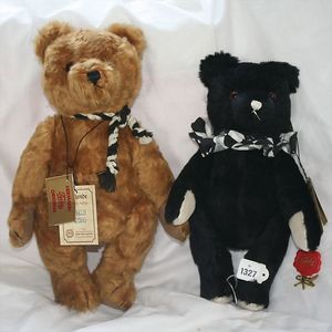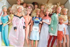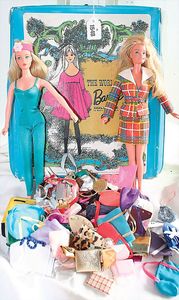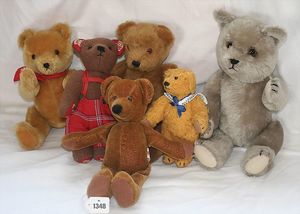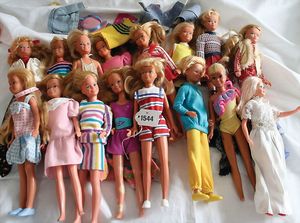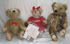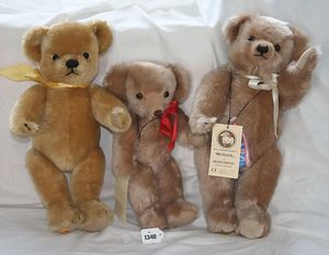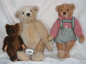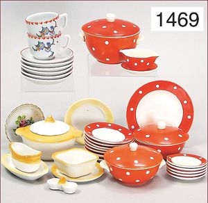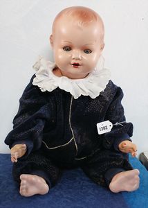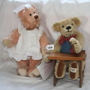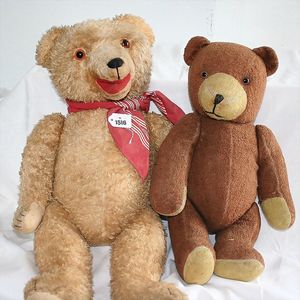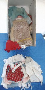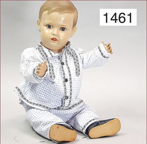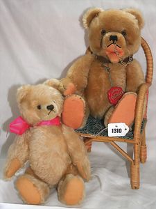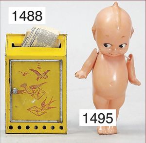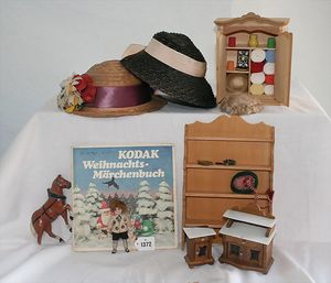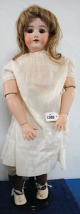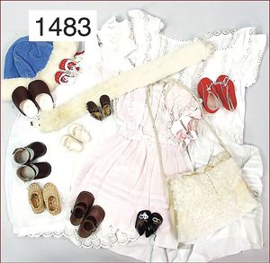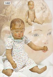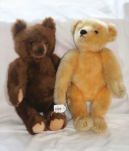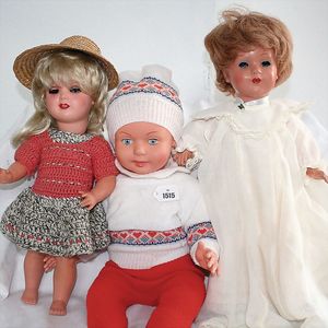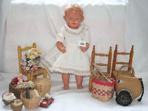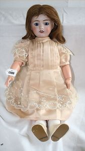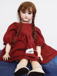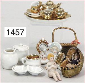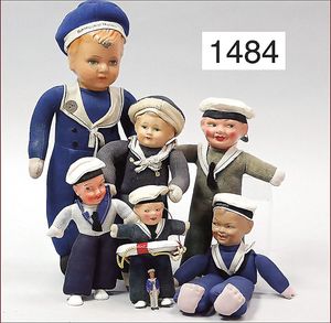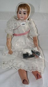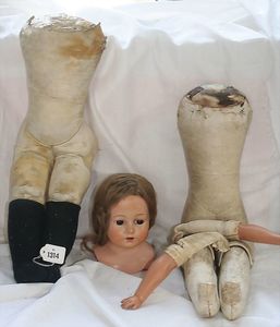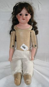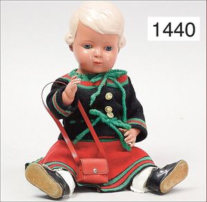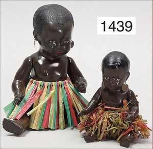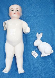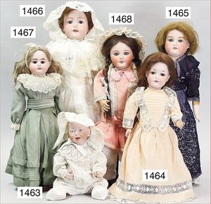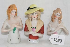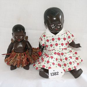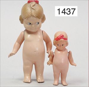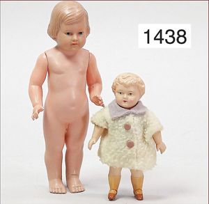 2 kl. Porzellankopf-Puppen, 1x gemarkt Armand Marseille 390, blaue fest eingesetzte Glasaugen, off. Mund, Zähne, Kunsthaarperücke, Masse-Stehkörper, mit anmodellierten Schuhen, 23 cm, 1x Heubach Köppelsdorf, gemarkt 407, blaue Schlafaugen, off. Mund, Zähne, etwas Farbabrieb an der Kopfkrone, Masse-Stehkörper, anmodellierte Schuhe und Strümpfe, 21 cm, in Tracht