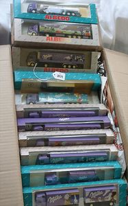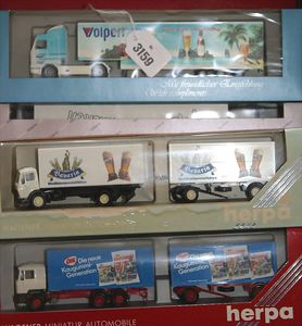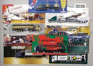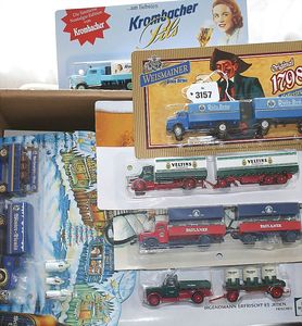 Konv. 57 Werbe-Trucks div. Hersteller, Maßstab 1:87, dazu einige kl. Modellautos