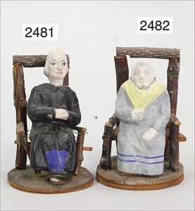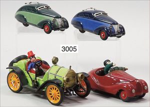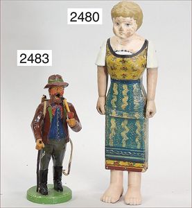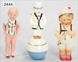 Stehauf-Figuren, Celluloid, 9,5 cm, Mann mit Stock, gem. Germany, 1 Celluloid-Junge, anmodellierte Kleidung mit Mütze, 9 cm, 1 Schildkröt-Steifbein-Puppe, 8,5 cm, aufgemalte Kleidung, altersbed. Lackfehler