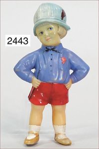 Celluloid-Junge, 13,5 cm, anmodellierte Kleidung, aufmodellierter Hut, Kopf seitl. geneigt, ausgefallen