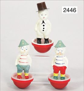 Paul Müller 3 Teile Stehauf-Celluloid-Clownfiguren, 6,5 cm, guter Zust.