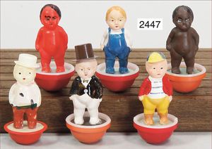 meist PAUL MÜLLER 6 Teile Stehauf-Figuren, Celluloid, 7 cm, Jungen in versch. Darstellungen, guter Zust.