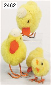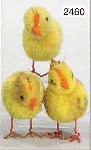 STEIFF Konv. Woll-Miniaturen, Nomotta-Wolle, 3 Küken, Filzschnabel, orangefarbener kleiner Filzkamm, Metallbeine, 1 Küken mit Reste der gelben Fahne und Knopf, 6 cm, drehbarer Kopf, Bemalung auf dem Gefieder