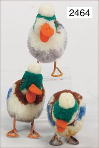 STEIFF Konv. Wollminiaturen, 3 Enten, Filzschnabel, Nomotta-Wolle, drehbarer Kopf, rot unterlegte Augen, gebogene Metallbeine, alle 3 in sehr gutem Zustand, schöne kräftige Farben