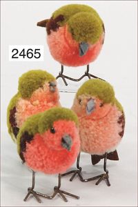 STEIFF Woll-Miniaturen, Nomotta-Wolle, 4 Rotkehlchen mit Filzschnabel u. -schwanz, 5 cm, Metallbeine, drehbarer Kopf, schöne kräftige Farben, grün/rot
