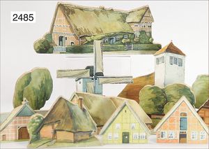 Bahnhof, Spur 0, Blech, lithogr, Grundplatte 35x20,5 cm, bespielt, gut