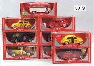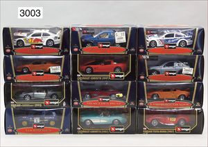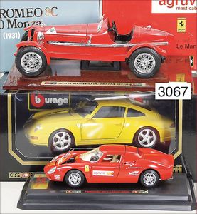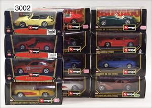 Konv. 12 Modellfahrzeuge, Maßstab 1:18, davon 10x Marke Burago, meist Ferrari, Porsche und Lancia, dazu 2 Tchibo-Modell-Fahrzeuge Porsche 356, unbespielt, im Orig.-Karton