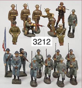 ca. 20 Teile Masse, 2. Weltkrieg, 7 - 7,5 cm, Elastolin, Lineol und andere, untersch. Nationalitäten, Zust. 3