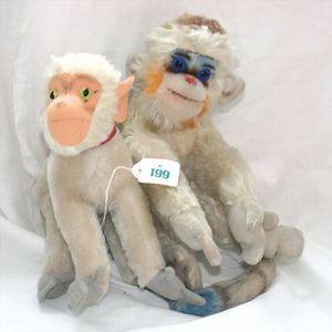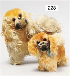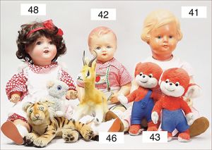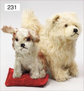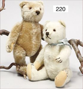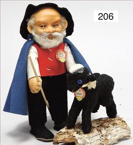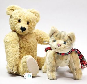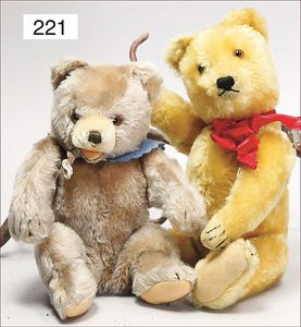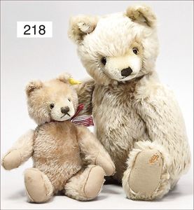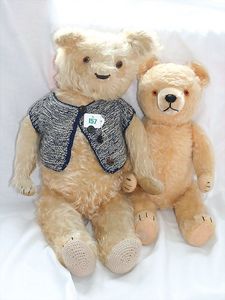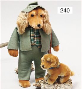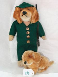 STEIFF Waldili, mit Knopf und Fahne, 28 cm, dazu kleiner Bazi, mit Knopf und Schild