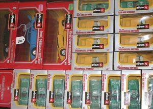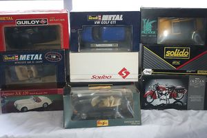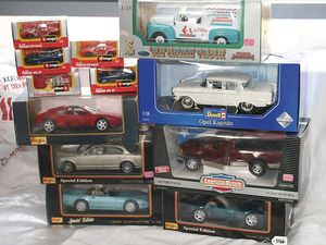 Konv. Modellfahrzeuge, versch. Maßstäbe, darunter 2 Modellauto-Sets, Maßstab 1:87, einige Modelle 1:43 der Fa. Play Bear, Solido und Guiloy und 1 Revell-Metalltruck, Maßstab 1:24, alles unbespielt, im Orig.-Karton