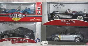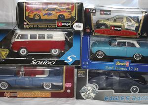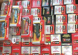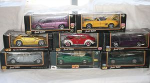 Konv. 34 Modellfahrzeuge, Maßstab 1:18, 1:24, 1:43 und 6x 1:86, versch. Modelle, versch. Gr. und Hersteller, darunter Burago, Chuco, Europlay und andere, unbespielt, im Orig.-Karton