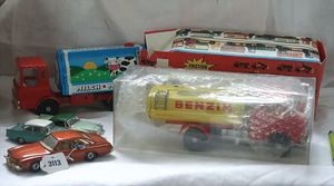 Konv. Modellfahrzeuge, darunter von Albedo Werbe-Trucks, dazu 2 Trucks Aufschrift Wrigley´s, 1x Modell Henrys Lady, Modell A in Blechdose, dazu kleinere Modellfahrzeuge, Maßstab 1:87 von Auto Max