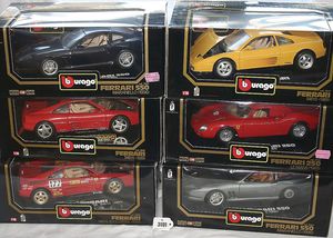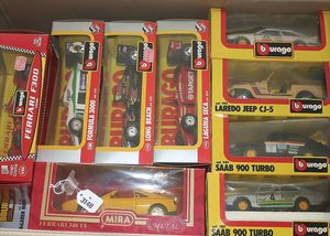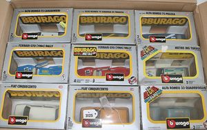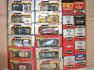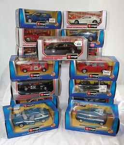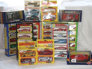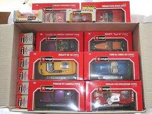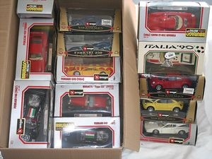 BURAGO Konv. 15 Modellfahrzeuge, Maßstab 1:24, versch. Modelle, wie Ferrari, Porsche, Ford, Alfa Romeo, Fiat und andere, alle unbespielt, im Orig.-Karton