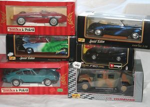 Konv. 11 Modellfahrzeuge, 10x Maßstab 1:18 und 1x Burago Ferrari F50 Maßstab 1:24, versch. Hersteller u.a. Maisto, Mira und Tonka, unbespielt, im Orig.-Karton