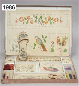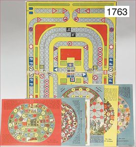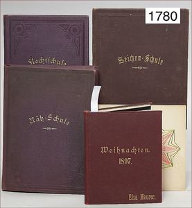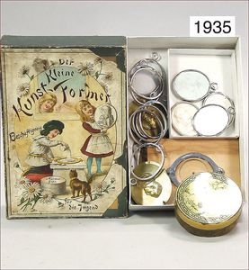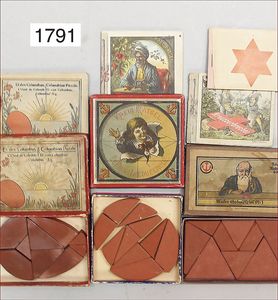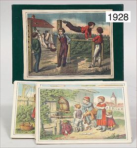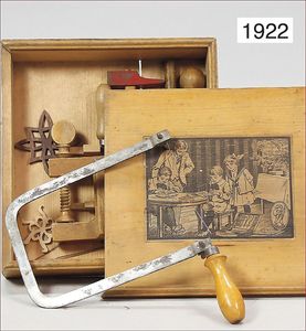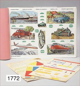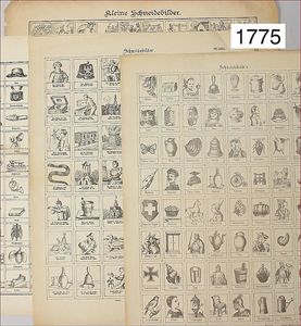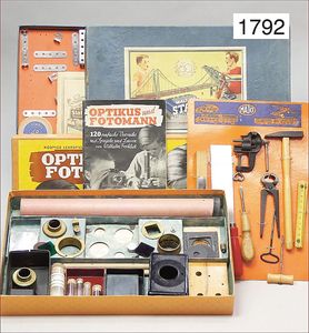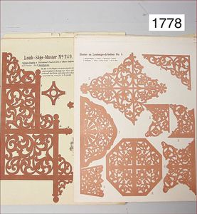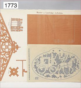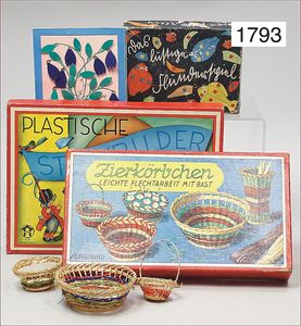 Konv. Ausschneidebögen, Wunderlampenschirm, um 1900, mit Messinghalter, Schreiber Esslingen, 2 Bögen, 36 x 43 cm, Lampenschirm Schweizer Haus, mit Anleitung, um 1900, mit Messing-Halter, Modellierkart., 213,214, Schreiber Esslingen, Villa zum Beleuchten, mit Anleitung, um 1900, Schreiber 435/436, 2 Bögen, 36 x 43 cm, mit Petroleum-Lampenschirmhalter, Messing, signiert J.B. Paris, Durchm. 6 cm, verstellbar, 16,5 x 21 cm, selten