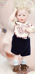 Biskuitporzellankopf-Puppe, Heubach 250, 34 cm, blaue Schlafaugen, off. Mund, oben Zähne, Kinngrübchen, Masse-Stehkörper, Orig.-Kleidung, als Hitler-Junge