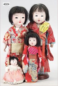 Muschelkalk-Familie, Japan, Kinder 9,5 cm und 17 cm, Mann und Frau 26,5 cm, Orig.-Kleidung, guter Zust.