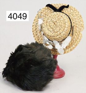 Bully, Papiermaché, um 1900, 45 cm, Orig.-Halskrause, Kratzstimme mit Zugmechanismus, beim Öffnen des Mauls, kleinere Abriebstellen sonst insgesamt schöner Orig.-Zust.