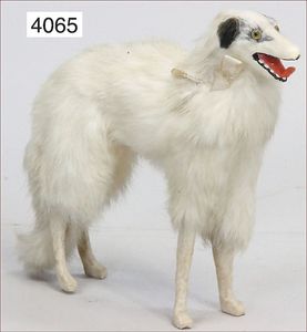 Echtfellhund (Windhund), stehend, 10 cm hoch, 10 cm lang, mit spitzer Schnauze, Glasaugen, guter Zust.