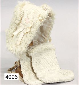 ausgefallenes franz. Häubchen, für gr. Puppe, aus Spitze, mit Seidenschleifenbesatz, Breite 16 cm, dazu 1 Stoffhaube (Kinderhaube), für gr. Puppe, mit roséfarbenem Seidenbesatz, transparent
