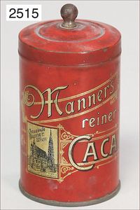 Blech-Kakaodose, Wien, mit Knauf, rot lackiert, 10 cm hoch, guter Zust.