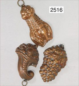 Konv. Ausschmückungsteile für frühe Küche, Backformen, 1 x Hummer, innen verzinnt, 1 x Trauben, 1 x ausgefallene Backform, Getränkeservierschale mit Blumen