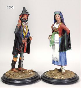 Konv. Stubenpuppen, Baby, Ganzbiskuit, 12 cm, Biskuit-Brustblattkopf-Puppe, blaue fest eingesetzte Glasaugen, geschl. Mund, Masse-Stehkörper, mit Hasenkostüm, 17 cm, kl. Schornsteinfeger, Ganzbiskuit, mit anmodelliertem Hut u. Schnurrbart, 10 cm, kl. Groednertal Puppe, kl. Biskuit-Porzellankopf-Puppe, Frankreich