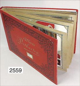 1-tlg. kl. Puppenstube, Musikzimmer, um 1900, 60 cm breit, möbliert, 2 Puppenstubenpuppen, reichh. Zubehör