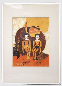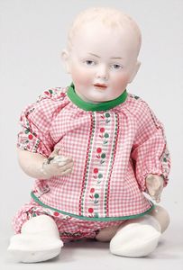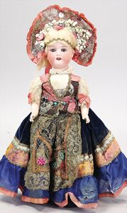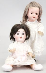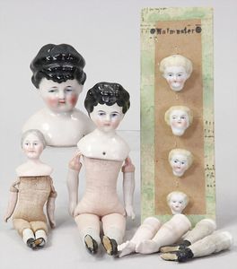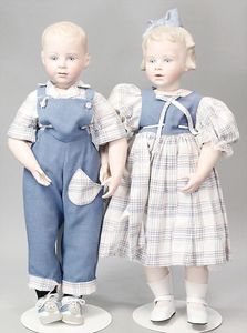 2-tlg. herrschaftl. Puppenstube, Küche, Wohnzimmer, 51 cm breit, 44 cm hoch, 44 cm tief, fest eingebaute Regale, Orig.-Bemalung an Wand und Boden, Herd aus der Zeit, Weißblech, Messingstange, eingebautes Wasserschiff, Kessel, Töpfe mit Messingdeckeln, einige frühe handgehämmerte Messingteile, Kaffeeröster, früher Weißblechteile, gedrehte Zinnteile, Holz und Keramik, Wohnzimmer mit herrschaftl. Möbeln, fein geschnitzt mit eingelegten Intarsien, Rock & Graner Blumentisch, Stubentisch, 4 Puppenstuben-Kinder, aufwendige Bodenbemalung, hochwertige alte Wandtapete, eines der schönsten Stücke aus dem Museum