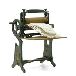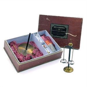Konv., 1 x Wimshurstmaschine (Influenzmaschine), um1910, 283 x 315 x 150 mm, guter Zust., kl. Altersspuren, ein Teil der Staniolsegmente fehlt, Kurbel und Lederriemen womöglich ersetzt, 1 x Anleitungsheft zu Voltana-Maschine (Influenzmaschine), 1921, sehr guter Zust., 1 x Röntgenröhre, Nachbauten nach Katalogabbildung von 1909, um1910, 210 x 185 x 130 mm, guter Zust., kl. Gebrauchsspuren, Stativ und Stativklemme Nachbauten, dazu Materialien zu Röntgenröhre, 1990 – 2003, sehr guter Zust., Klebespuren, 1 x Blitztafeln, um 1910, guter bis sehr guter Zust., leicht bespielt, Stativ mit Stativklammern passender Nachbau, 1 x Funkeninduktor, Frankreich, Paris, 1900 – 1910, guter Zust., auf Funktionsfähigkeit nicht geprüft, leicht bespielt, ohne Ketten