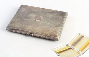 Zigarrettenetui um 1940/50, Silber 925/000t, umlaufend teilvergoldet, innen vergoldet, weiche schmeichelnde Form, hochwertig verarbeitet, D = 77,5 mm H = 14,8 mm, total 178,7 g
