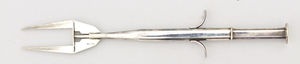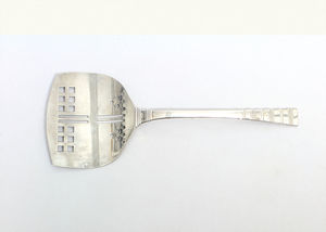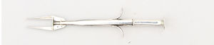 Servierbesteck 20/30er Jahre, LUTZ & WEIß Pforzheim, Silber 835/000, Gabel mit Abstreifmechanismus L = 14,3 cm, total 17,4 g