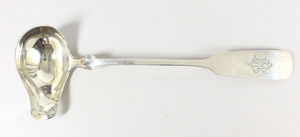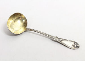 Soßenkelle, schöner JUGENDSTIL, Silber 800/000 (Restvergoldung), gepunzt UAL, L = 18,5 cm, schwere Ausführung, total66 g