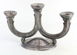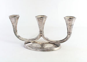 Kerzenleuchter 1930er Jahre, Silber 850/000, dreiarmiger Leuchter mit ovalem Fuß, gradliniges 6-eckiges Designe, H = 12 cm, B = 26,5 cm, total 214 g
