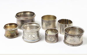 Lot: 7 Stück, Serviettenringe um 1920, Silber 800/000 teilweise mit Monogramm / Namensgravur, D = 28- 50 mm, total 79 g