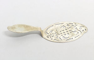 Heber, DEUTSCHES BIEDERMEIER um 1820/30, Silber 13 Lot. Meisterpunze: BR, Holzgriff, Heber graviert u.durchbrochen mit einer sich um einen Baum windenden Schlange, L = 32,5 cm