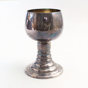 Becher vor 1900, Silber 800/000, gepunzt: WTB, Gravur: Krone u. Monogramm "RJC" 29, RV: M. Lindeck 19.11.99, D = 57,5 mm, H = 92,5 mm, 77,9 g