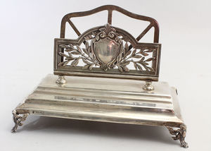 Schreibablage um 1910, Silber 925/000, Ablage für 2 Stifte mit Halterung für Papier und Kuverts, H = 14, B = 21, T = 14 cm, total 472 g