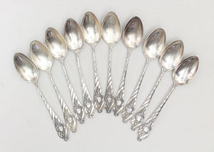 Eßbesteck 73 Teile: WMF FÄCHER, 90 Auflage, 9 x Kuchengabeln, L = 16 cm, 10 Kaffelöffel, L = 14 cm, 12 Dessertgabeln, L = 18,2 cm, 12 Dessertmesser, L = 20,3 cm,1 x Dessertlöffel, L = 18,5 cm, 7 x Messer, L = 25,5 cm, 1 x kl. Vorlegelöffel, L = 19,7 cm, 2 x gr. Vorlegelöffel, L = 25 u. 26 cm, 1 x Fleischgabel, L = 25,3 cm; Obstbesteck je 9 x Gabeln, L = 14,7 cm u. Messer, L = 17,5 cm (teilvergoldet)