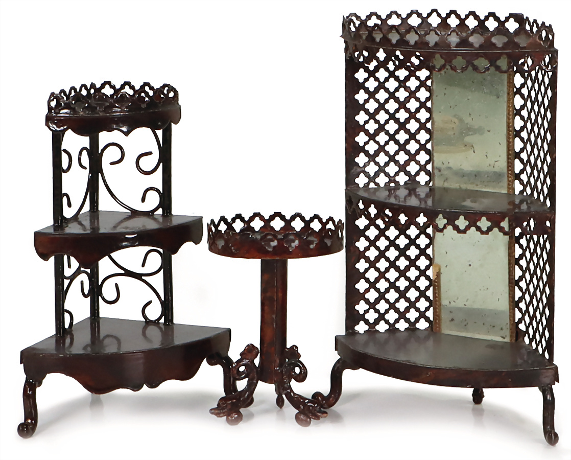 Biberacher Blech, Eckregal, 15,5 cm, verspiegelt, Eckregal, 13 cm, 1 Tisch, sehr guter Zust., Provenienz: „Sammlung Frohnwieser“