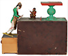 Treppenläufer, Osmane, H: 12 cm, Orig.-Bemalung, Orig.-Kleidung, Rock altersbed. etwas verschlissen, ca. 1880, Figur bewegt sich über den Kopf schlagend auf den Händen nach unten, kl. musizierender Affe
