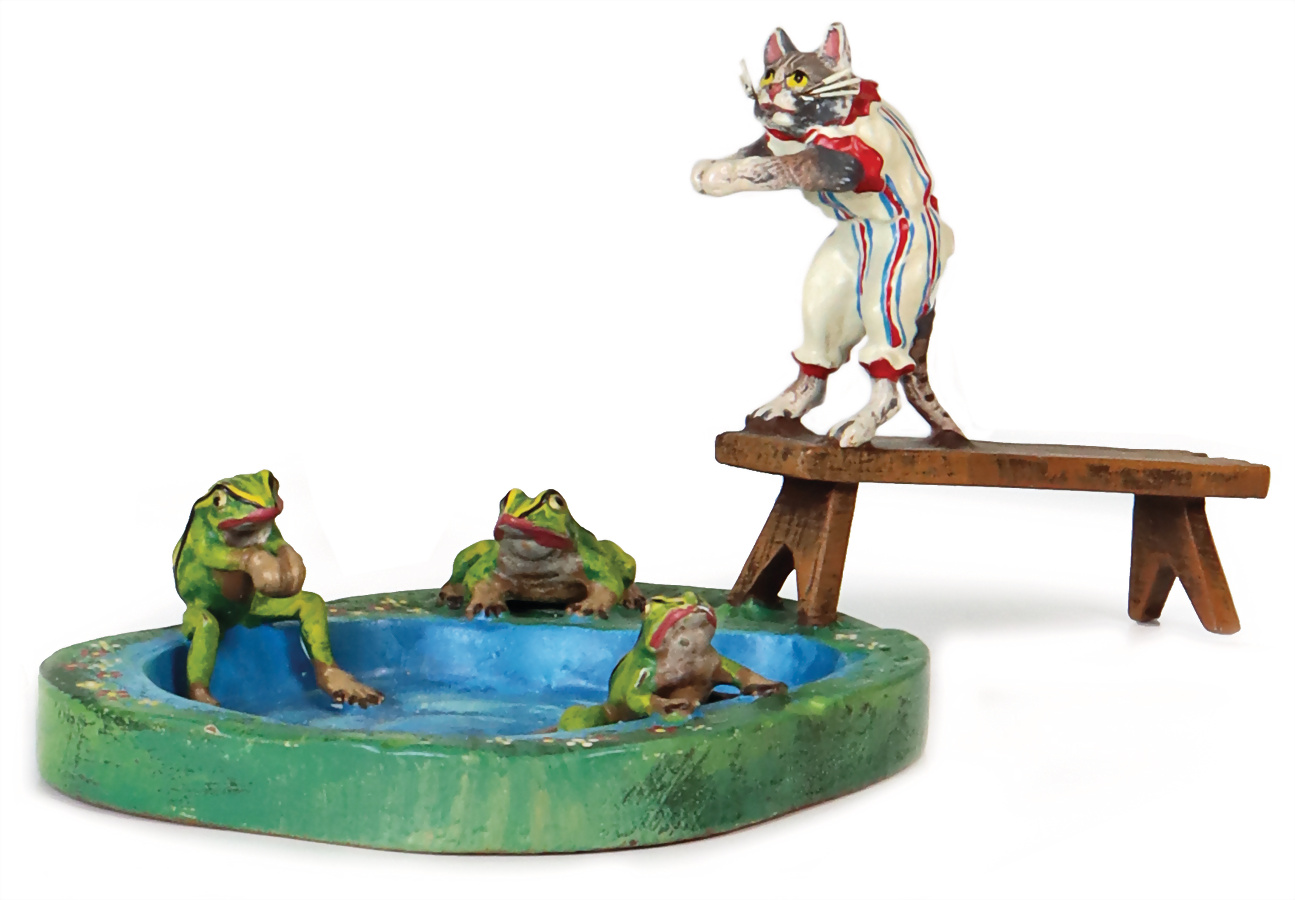 Wiener Bronze, Katze badet im Froschteich, H: 6 cm, sehr guter Zust., feine Bemalung